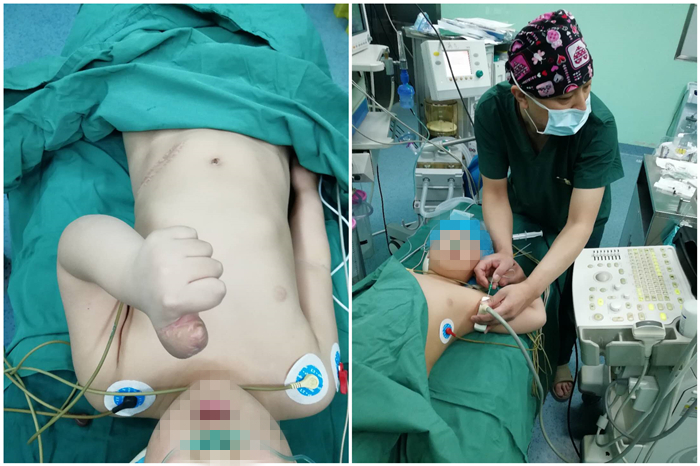 患者,4岁3月,16kg,因外伤拇指行皮瓣修复术。以往这类手术都是以全身麻醉为主,小儿全麻常会引起呼吸道不畅、阻塞和呼吸抑制等,大多时候还需要气管插管,给术后的护理也带来很大的麻烦,并还有药物蓄积、苏醒延迟等风险,同时全麻用药量也较多费用也较大。而神经阻滞麻醉往往要求患者配合,小儿又不配合易哭闹,定位不准确影响麻醉效果。