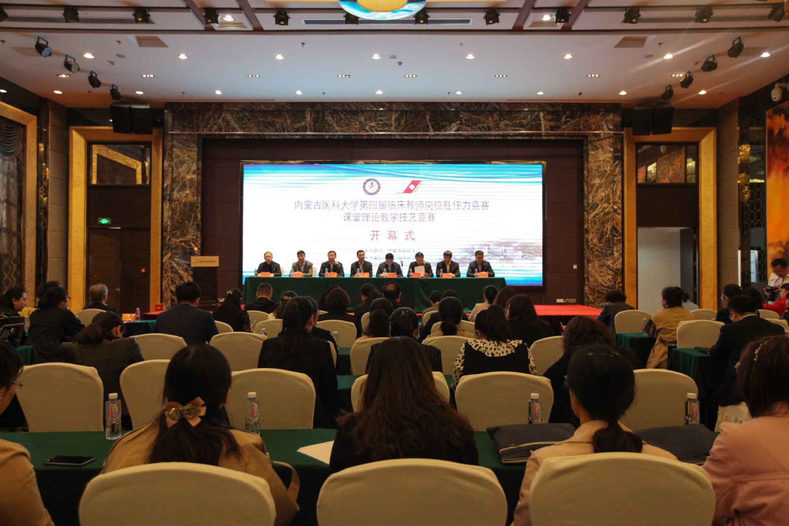 4月15日上午,内蒙古医科大学第四届临床教师岗位胜任力竞赛课堂理论教学技艺模块竞赛正式开幕。内蒙古医科大学副校长阿古拉教授,内蒙古医科大学原副校长、教学督导委员会主任、临床课堂理论教学技艺模块裁判长刘志跃教授,实践教学部主任王进文,副主任巴特尔,通辽市医院党委书记、院长、通辽临床医学院院长雷彤,内蒙古医科大学第一临床医学院副院长赵建民,赤峰临床医学院副院长张析哲,第三临床医学院院长助理高柏青等出席开幕式。各参赛单位相关负责人,裁判、领队、参赛选手及观摩人员等百余人参加了开幕式。雷彤与阿古拉分别在开幕式上致辞,裁判员代表杜艳秋与参赛队员代表闵颖分别进行宣誓。开幕式由王进文主持。