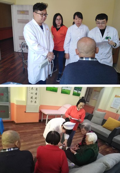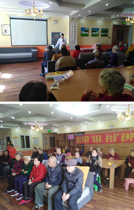 为确保延伸护理服务取得更好的效果。在活动前期,我院护理部与养老服务中心进行了充分的沟通,并针对老人们的基本情况及需求确定了此次活动的相关内容。其中,在培训会环节上,我院多年从事老年病护理工作的老年病科护士长赵春梅精心准备,从自我监测、心理调节、生活护理、基础护理、用药护理等多方面详细讲述照护方法、观察内容和护理措施。同时,赵护士长还热心地为老人们普及老年人意外风险事件防范措施,如何在日常生活中预防跌倒、坠床、皮肤压伤等风险事件,如何保持和促进机体功能的良好状态等知识。随后,心内一科护士长洪英还为老人们测量餐后血糖和血压,做床边心电图,讲解皮肤护理及肢体功能锻炼的方法;医生郑凯询问每一位老人的身体状况、既往所患疾病情况、用药情况,为他们进行心脏和肺部听诊等等。通俗易懂的语言、贴合实际的知识、贴心专业的医疗指导服务得到老人们的频频赞许。