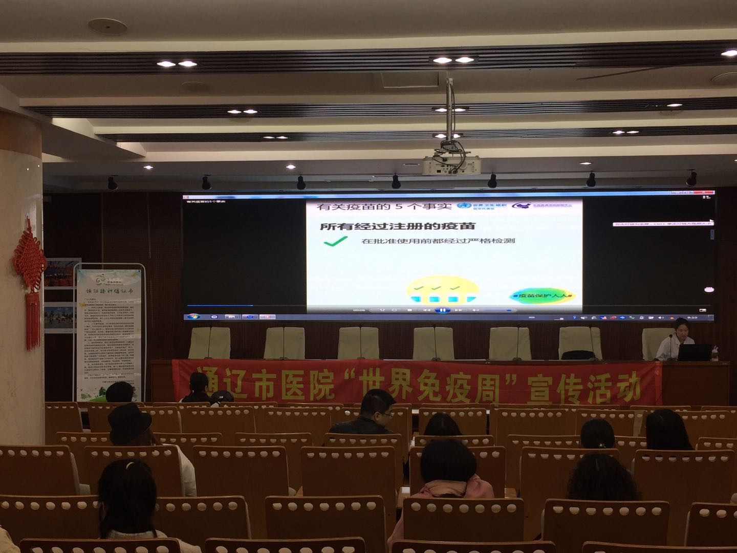 宣传活动四:在我院干部病房一楼会议室开展了“世界免疫周”知识讲座,发放宣传单、对现场的准妈妈及家属进行耐心讲解与宣传有关预防接种知识和相关政策措施。