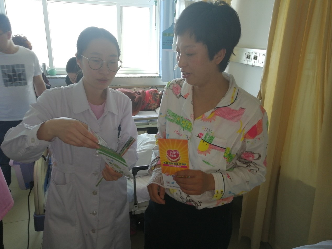宣传活动三:产科病房张贴宣传画、发放宣传单、对孕妇及产妇进行宣教及答疑。