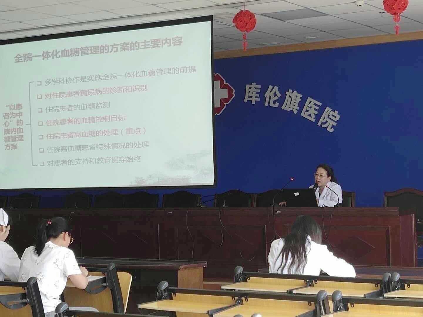 为进一步改善对口受援医院医疗服务,深化优质护理内涵,践行三甲医院职责,5月9日下午,我院第二党支部与内分泌科一行7名医护人员在许英主任的带领下深入库伦旗医院,举行了以“服务基层,方便群众”为宗旨,“预防糖尿病,健康我先行”为主题的糖尿病健康宣教活动,指导库伦旗医院医护人员进行慢病管理、康复护理及健康教育方法。