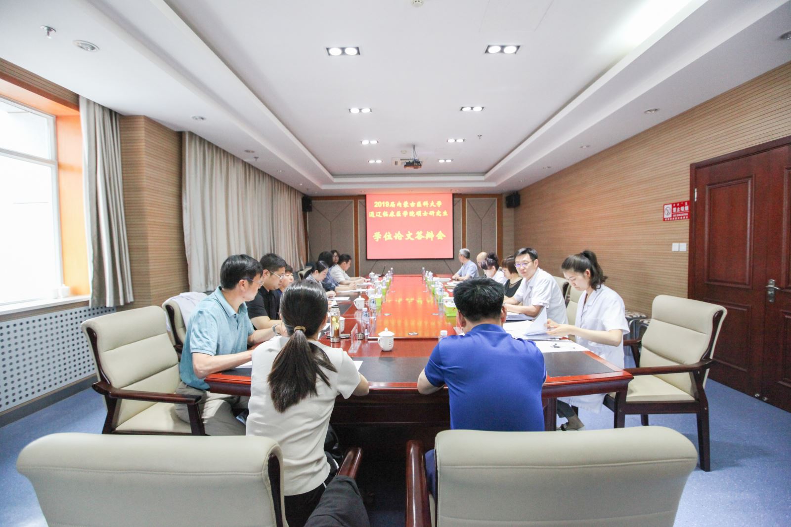 6月13日上午,2019届内蒙古医科大学通辽临床医学院硕士研究生学位论文答辩会在我院全科医师培训楼8楼会议室成功召开,我院承办本院及呼伦贝尔市人民医院硕士研究生论文答辩工作。答辩委员会主席由内蒙古民族大学附属医院副院长张东威担任,硕士研究生导师院长助理、儿科主任李宏颖,泌尿外科副主任陈博,赤峰学院口腔医院姜喜玲副院长,呼伦贝尔市人民医院梁秀文主任医师、季丽玢主任医师、曾春艳主任医师以及答辩委员会成员出席会议。我院及呼伦贝尔市人民医院8名研究生参加答辩。
