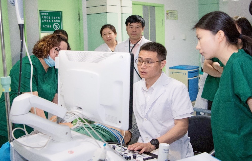 6月15日,我院首例经食道容积超声心动图检查在东院区超声科成功开展,填补了我市此项技术空白。在杨莉主任的带领下,心内一科宝云龙主任的全力协助下,超声科心脏组医生相继已独立成功完成7位病人的检查。 科室特邀中国医学科学院阜外医院超声影像中心朱振辉教授来我院指导交流,朱教授现场进行了疑难病例的经食道心脏超声操作演示。