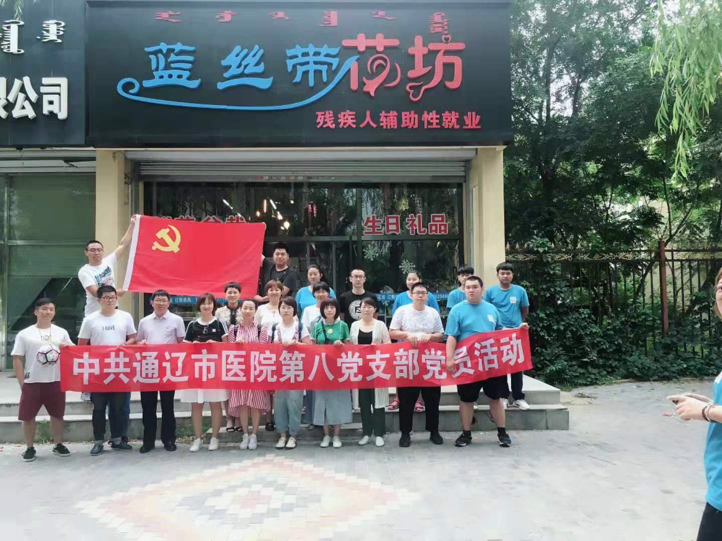 为深入学习贯彻习近平新时代中国特色社会主义思想和党的十九大精神,进一步深化“不忘初心、牢记使命”主题教育实践活动,弘扬中华民族的传统美德,体现医疗卫生人员对特殊群体的深切关爱,7月13日下午,中共通辽市医院第八支部委员会党支部书记徐晶芳带领支部党员15人到蓝丝带花坊兼残疾人辅助性就业机构开展了关爱特殊人群主题党日及集中理论学习活动。