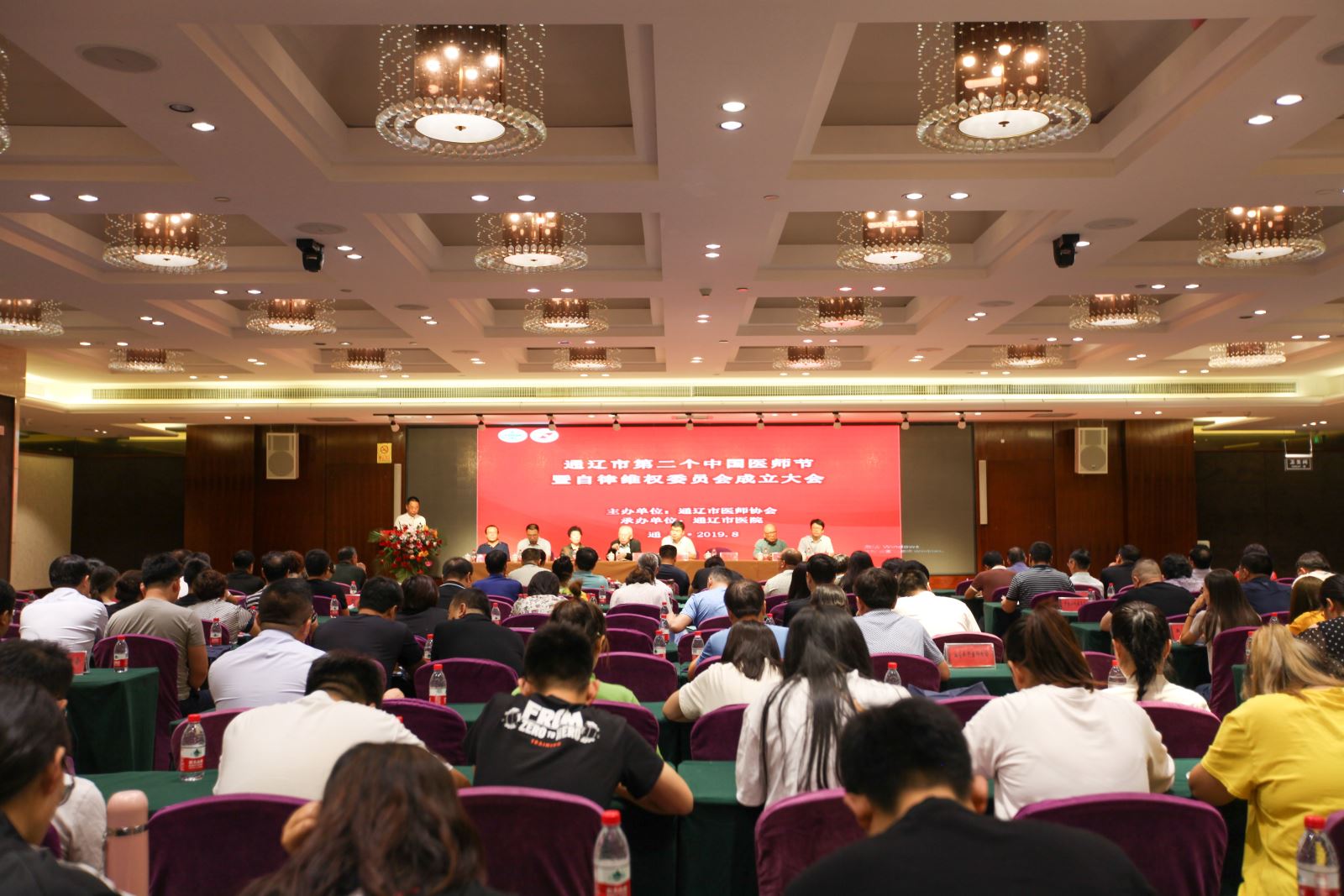 广大医务工作者是建设“健康中国”的参与者,更是主力军。8月9日,在第二个“中国医师节”即将来临之际,为弘扬医者“敬佑生命,救死扶伤,甘于奉献、大爱无疆”的崇高精神,营造全社会尊医重卫良好氛围,保障医务工作者的合法权益,共同构建和谐有序的医疗秩序和医疗环境,由通辽市医师协会主办、我院承办的庆祝第二个“中国医师节”大会暨通辽市医师协会自律维权委员会成立大会在鑫达国际酒店隆重召开。市卫健委副主任、市医师协会荣誉会长赵玉儒,中国医师协会乡村医师分会副会长、自治区医师协会乡村医师分会会长白力军,中国医师协会法律事务部主任邓立强,北京烧伤创疡研究所副所长樊兆宗,市医师协会会长丛丽萍,副会长张建华,我院党委书记、院长雷彤,院长助理张晓帆出席会议,全市医师代表共200余人参会。