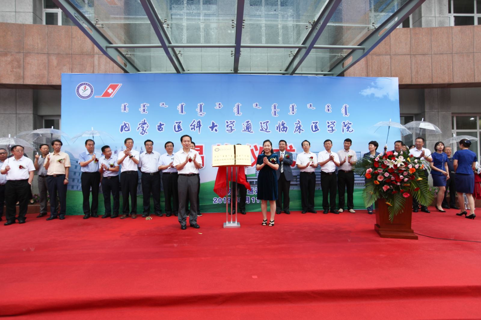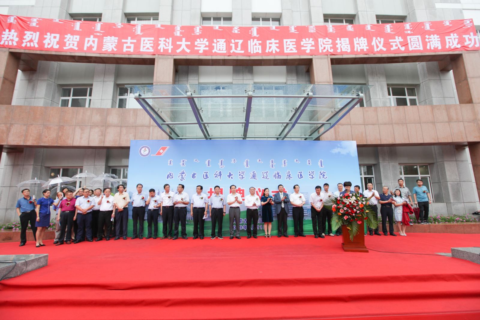 8月11日上午,内蒙古医科大学通辽临床医学院揭牌仪式在我院全科医师培训楼前隆重举行,标志着我院与内蒙古医科大学开启共商共建、共享共赢的崭新篇章。内蒙古医科大学党委书记乌兰,校长杜茂林,自治区卫健委党组成员、副主任张小勤,内蒙古医科大学副校长阿古拉,包头市政协副主席、包头临床医学院院长胡江,自治区卫健委科教处处长杨巨钧,市委副书记、政法委书记杜汇良,市政府副市长崔景英,市人大常委会副主任希日巴拉,市政协副主席檀志军等领导以及各临床医学院、市直医疗单位及旗县二级综合医院代表出席揭牌仪式,我院全体班子成员、环节干部共计200余人共同参与揭牌仪式。崔景英副市长主持揭牌仪式。