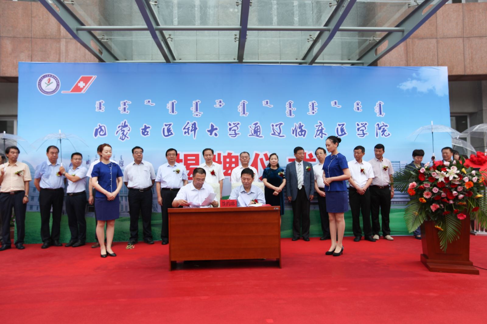 我院是通辽市最大的一家三级甲等综合医院,功能完善、设备先进、技术精湛,在内蒙古东部地区颇具影响力,自1996年成为内蒙古医科大学的教学医院以来,医院始终致力于教学医院的师资队伍建设、基础建设和能力建设,在教学用具的添置,临床技能培训的完善,教学环境的改善等方面做了大量卓有成效的工作。2018年12月13日经自治区卫健委、教育厅批准正式成为内蒙古医科大学通辽临床医学院。初心如磐、使命在肩。在深化医教协同的大背景下,我院将以此次挂牌仪式为契机,进一步统一思想,凝聚共识,按照“优势互补、互惠互利、共谋发展、共享成果”的原则,不断推进院校双方在学科建设、师资队伍、专业设置、科学研究、社会服务等领域的实质性合作和融合,强化医教协同,教学相长,推动医院医疗、教学与科研水平再上新台阶,为健康中国、健康内蒙古战略的实施作出新的更大贡献。