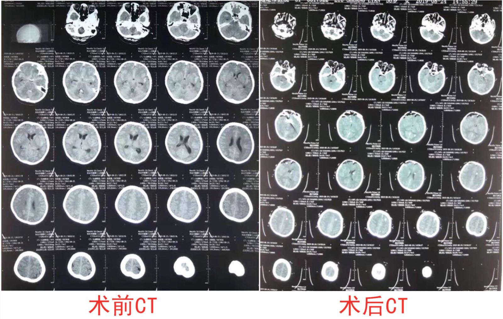 患者,女,56岁,因“头痛、右下肢麻木无力4小时”来院就诊。经查体,患者右下肢活动障碍,颈部僵硬;头部CT见环池、鞍上池、双侧侧列池、前纵裂池、四脑室见高密度影;诊断为自发性蛛网膜下腔出血伴有中危级高血压。入院后,我院西区神经外科立即组织医生进行了详尽的病例讨论,经与患者家属充分沟通,决定为患者实施右侧眶上锁孔入路前交通动脉瘤夹闭术。手术由秦义民主任亲自主刀,在科室医生的密切配合下,顺利为患者在全麻下行“右侧眶上锁孔入路前交通动脉瘤夹闭术”。术后,病人病情平稳,生命体征正常,右下肢及颈部症状逐渐好转。