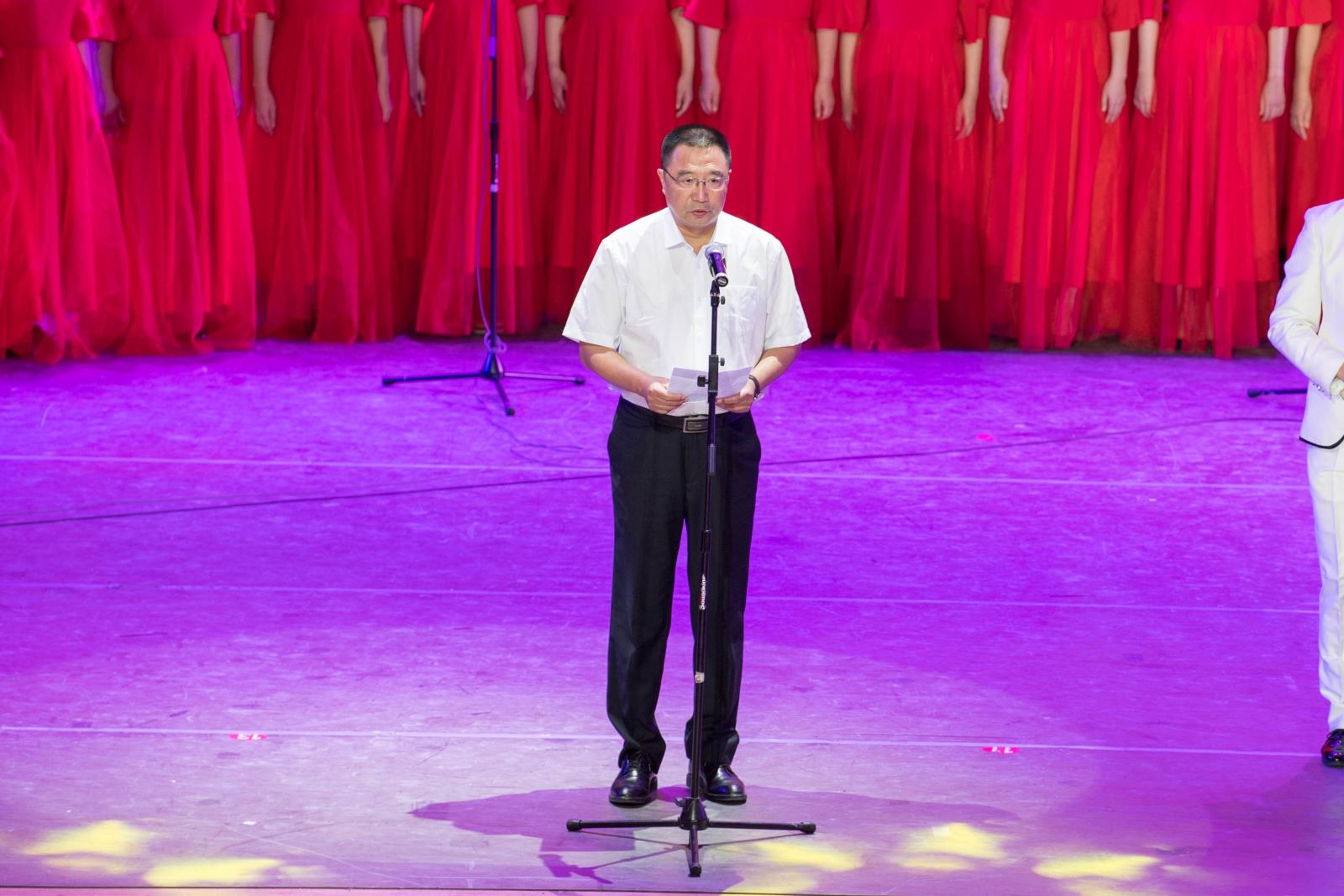 风雨兼程、披荆斩棘,通辽市医院与共和国一同成长。在演唱会上,我院党委书记雷彤同志致辞,他与同志们共同回顾70年来党带领中国人民走过的伟大征程,共同回首通辽市医院的奋进历程。他诚挚感谢,感谢同志们坚定信念、坚守信仰,他指出伟大变迁和成绩的取得无不凝聚着历代通辽市医院人的坚守和心血,无不闪耀着所有同志们辛勤劳动和无私奉献的灿烂之光;他殷切期盼,期盼同志们继往开来、再创辉煌,他要求全体职工继续发扬敬佑生命、救死扶伤、甘于奉献、大爱无疆的精神,大力推进医院改革、发展、建设、创新,全面提升医疗能力、质量、服务、安全,为打造自治区东部医疗中心而不懈奋斗,为通辽市医院美好未来再立新功;他衷心祝愿,祝愿同志们演出成功,幸福安康。