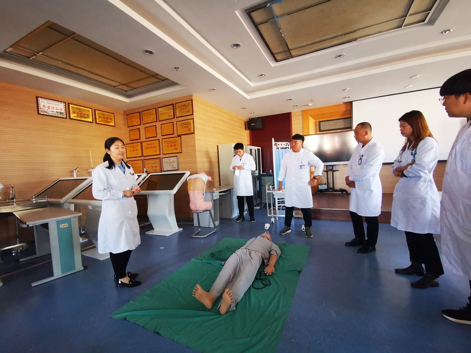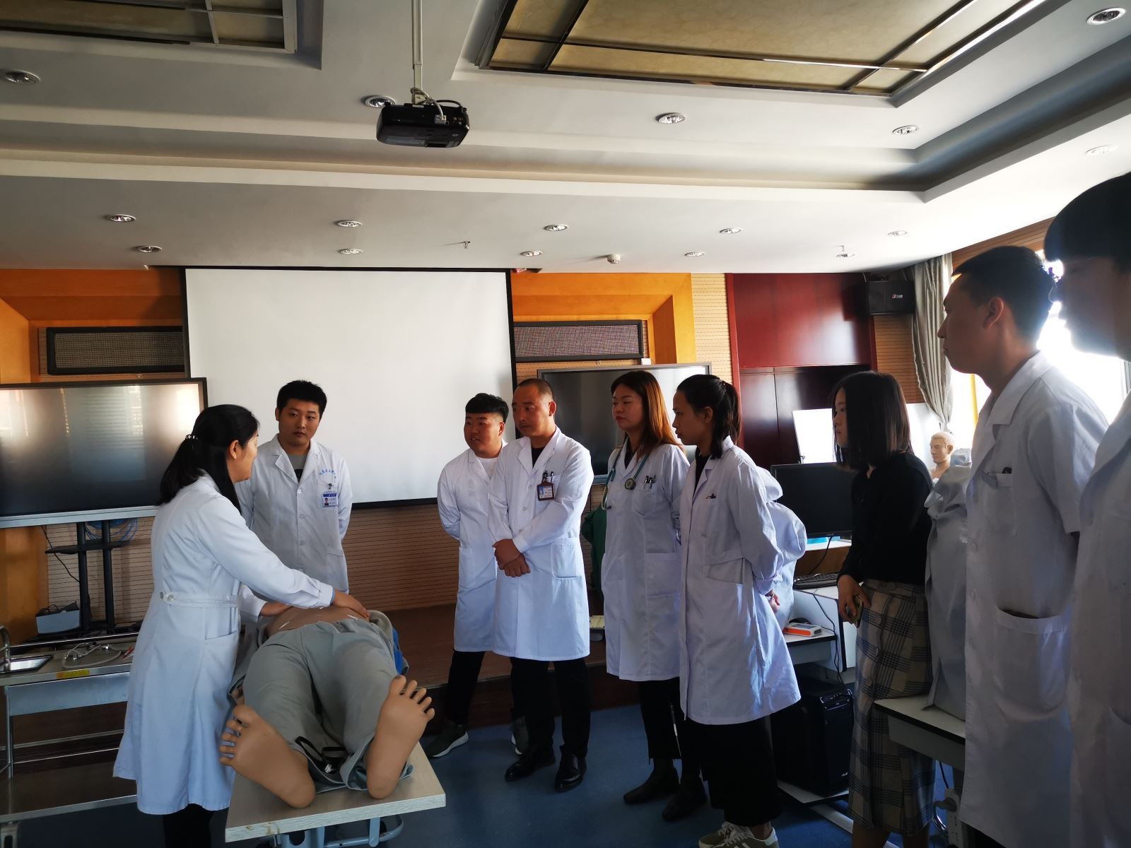 此次培训由心内一科教学秘书吴哲担任主讲,培训内容严格按照临床实践技能标准进行,内容包括心脏查体、心肺复苏、医患沟通技巧、临床思维等。培训中,指导老师耐心示范、讲解,学员轮流进行操作,随后由指导老师逐一指出学员操作不足,并予纠正,真正让学生做到了学懂、弄通,学员们纷纷表示受益匪浅。