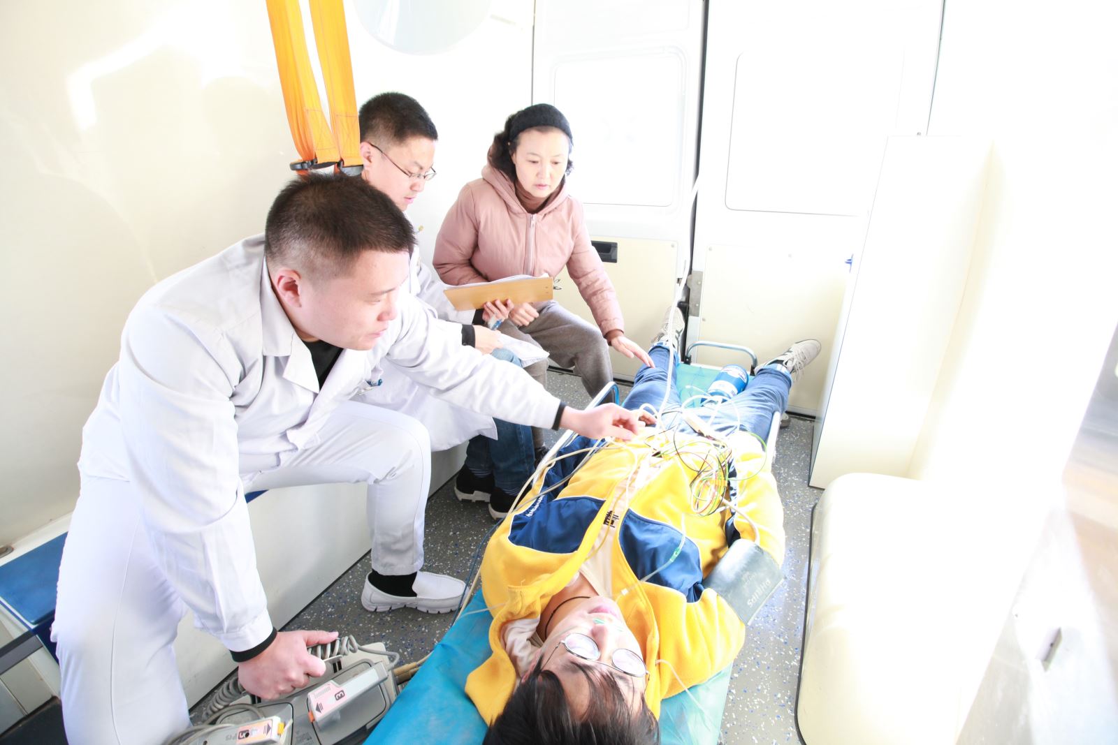 这次仅用时35分钟完成的术前抢救不是一次普通的急诊出诊,而是10月29日我院开展的120接诊急性胸痛患者模拟演练。我院医务科、急诊科、胸痛中心、心内科、介入科等相关科室按照预定演练方案紧张有序地进行着,圆满完成对急性胸痛患者分级急救流程演练任务。