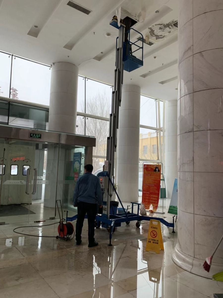 2019年12月10日下午14:30分左右,窗外正飘着鹅毛般大雪,我院西院区一楼大厅棚顶内空调管道突然炸裂,水流如注,像瀑布一样倾泻下来,大厅的地面瞬间出现积水,如果不及时处理,前来就诊的患者及家属有可能出现跌倒等危险情况发生。