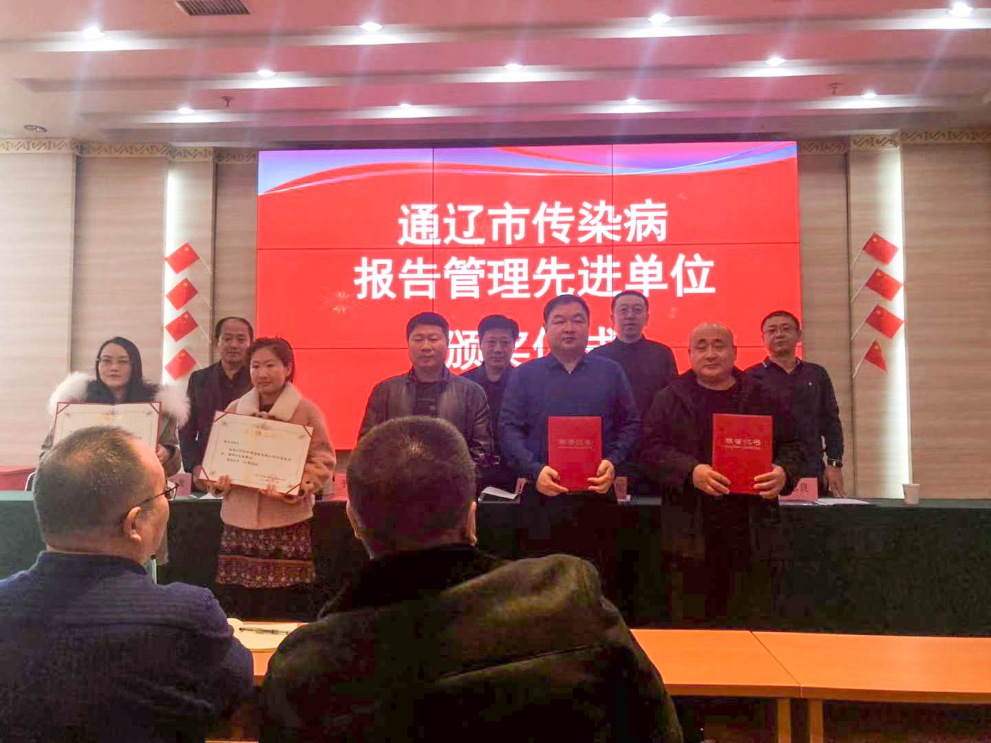 会议对2019年全市传染病信息报告质量综合评价结果、全市传染病报告管理督导检查结果、传染病预警系统运行进展和预警信号响应情况进行了通报,并对2018~2019年全市传染病报告管理工作突出的先进单位和先进个人进行了表彰,我院荣获“通辽市传染病报告管理先进单位”,付琳同志荣获“通辽市传染病报告管理先进个人”的荣誉称号。此项荣誉,是激励和鞭策,更是使命和担当。