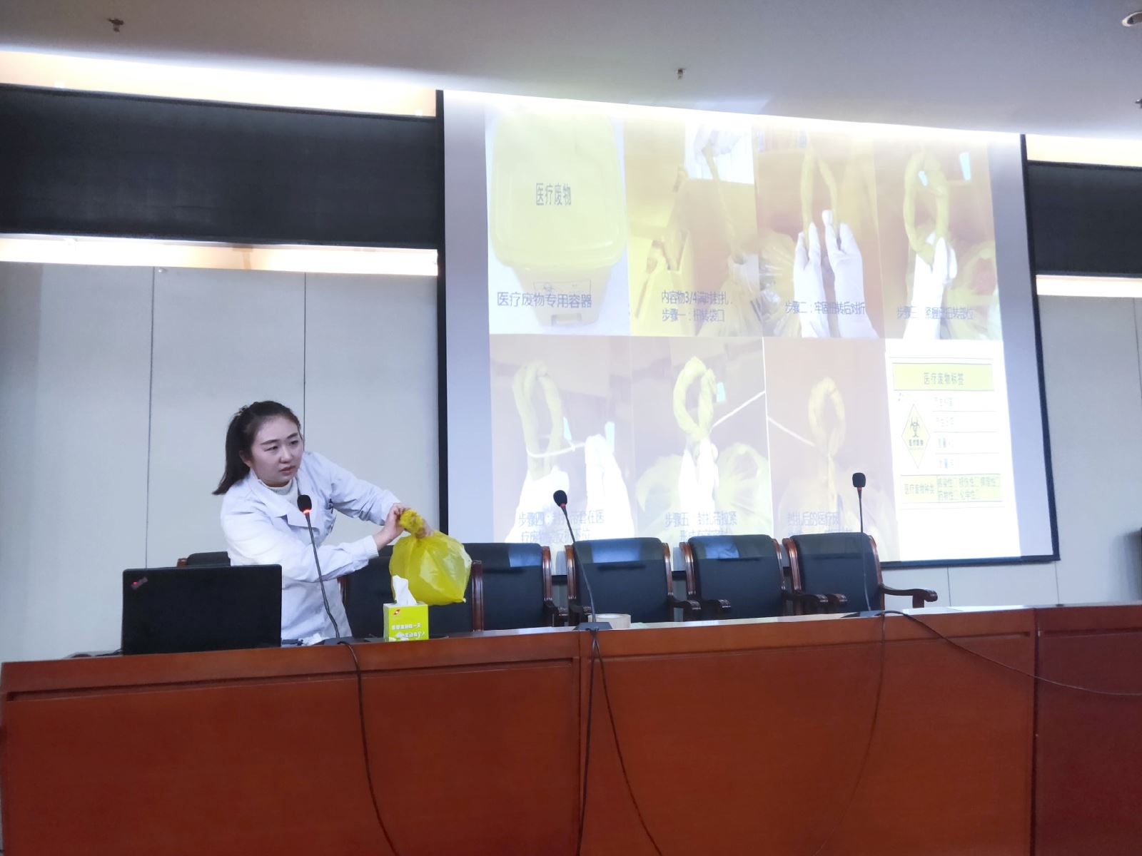 为加强我院保洁人员感染知识的认知,做好双向性保护,既保护自己,又保护病人,从而控制医院感染,确保医疗安全,提高医疗质量,12月24日下午,我院感染控制科分别在东、西、北三院区会议室开展保洁人员医院感染知识培训,三院区共有130余名保洁人员,包括清洁人员、医疗废物回收员、医疗废物专管员参加了此次培训。