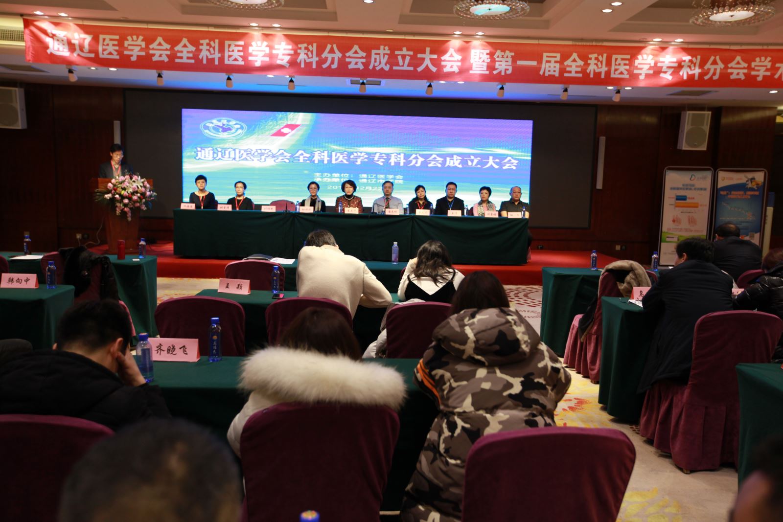 为推进健康中国发展,促进我市全科医学专业发展,12月22日,由我院承办的通辽医学会全科医学专科分会成立大会暨第一届全科医学专科分会学术年会在鑫达宾馆会议室隆重召开。通辽医学会常务副会长李英华同志,内蒙古医学会全科医学专科分会主任委员、包头医学院公共卫生学院院长刘铮然,我院副院长杜艳秋,通辽医学会秘书长张一鸣,复旦大学附属中山医院全科医学科主任、博士生导师潘志刚教授,包头市包钢医院健康产业管理部部长、包头市全科医学培训中心主任、硕士生导师王志香教授,呼和浩特市第一医院内分泌科主任、硕士生导师池海谊教授,包头医学院第一附属医院感染疾病科主任、硕士生导师林爱清教授,我院全科医学科负责人王宇等出席会议,全市全科医学相关从业人员150余人参会。