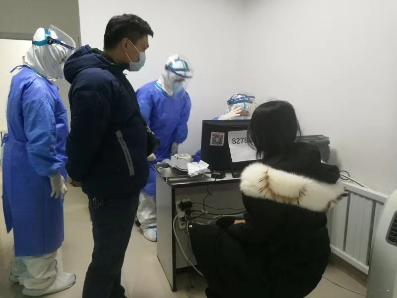 每天八点,是医生交接班的时间,他们来到发热门诊,穿好防护服开始接诊患者。一边为患者讲解新型冠状病毒感染性肺炎的特点以及防控知识,缓解患者及家属的紧张情绪,一边为患者测试体温、体格检查、采样送检新冠状病毒核酸检测、抽血化验等。病人很多,有的来自武汉,有的接触过武汉人员,有人发烧,有人没有症状但很担心,就都来发热门诊检查……和平时的门诊工作相比,发热门诊每个病人都要详细的追问出行史、接触史,还要进行各种登记和表格的填写。不停地问,不停地写,平时看完3个病人,现在也看不完一个。为了保持空气流通,发热门诊的窗户是打开的。仅靠暖气杯水车薪,北方的这个季节,门诊的室内温度可想而知。