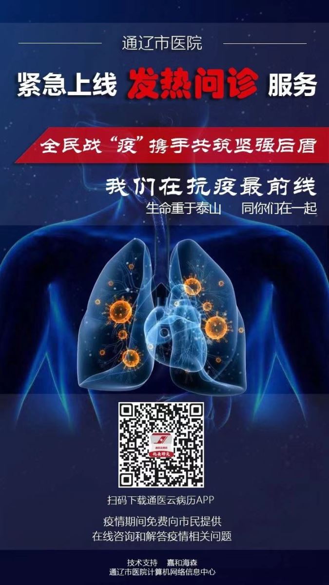 当前,新型冠状病毒肺炎疫情防控工作进入了更为复杂严峻的关键时期。为深入贯彻落实国家、自治区、通辽市有关新型冠状病毒肺炎防治工作要求,保障人民群众生命安全和身体健康,合理分配有限的医疗资源,缓解群众紧张情绪,正确引导患者就医,减少线下传播交叉感染的风险,我院紧急上线“发热问诊”免费咨询服务,疫情期间为广大市民答疑解惑,提供免费在线咨询服务。