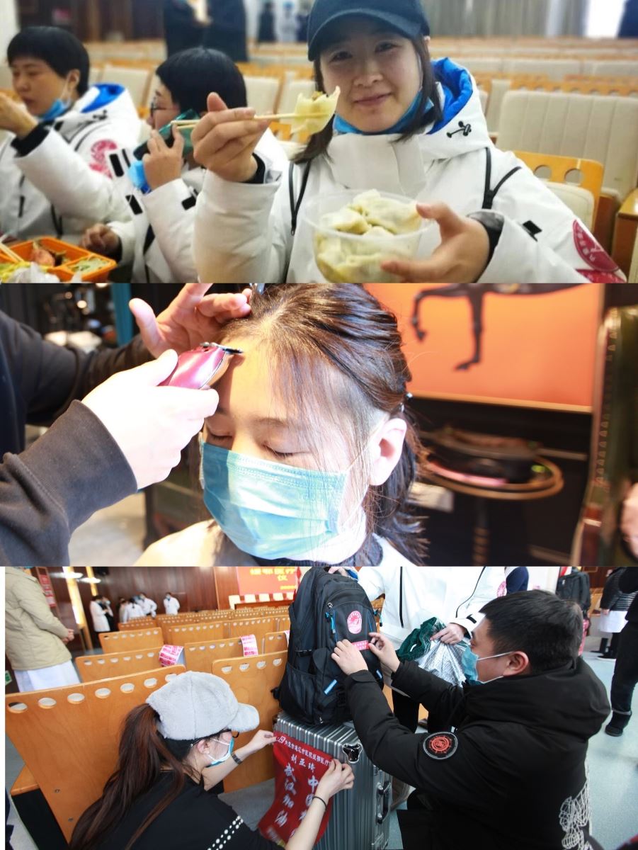 俗语说,上车饺子下车面,临行前,我院为出征的英雄们准备了热腾腾的饺子,用团圆的饺子化作美好的祝福送给每一个人。剪掉长发、整理行装、搬运物资、相拥送别……忙忙碌碌中,有不舍,有牵挂,更有“若有召,召必回,战必胜”的信心和坚毅。内蒙与湖北虽山川相隔但心脉相连,北疆医者千里驰援,不计得失,将与当地通力合作,共同打赢疫情防控阻击战。“请家乡人民放心”“相信我们”“一定能成功”,飞机已经起飞,医疗队员们的声声承诺,犹在耳畔。