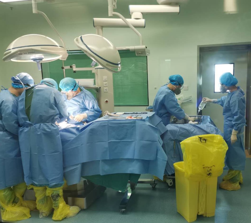 胃肠外科接到任务后,立即做好救治准备。晚10时30分许,杜艳秋副院长的陪同下,患者入住胃肠外科。胃肠外科主任门殿伟、值班医生喻祥旺及从家中紧急赶来参与协作救治的刘洋、白斯古楞医生已经投入到紧张的工作中。他们详细询问患者病史、查体、辅助检查后,考虑直肠癌晚期、肝多发性转移瘤、肠破裂、腹膜炎、感染中毒性休克,建议急诊手术治疗,但患者及家属反复商量后有所顾虑。随着时间的流逝,患者病情逐渐加重,如不及时手术将危及患者生命。胃肠外科团队本着对患者负责的精神耐心与患者及家属沟通,细致地分析病情、讲解手术治疗的必要性,最终征得患者家属同意,18日清晨手术得以顺利开展。在手麻科的全力配合下,经过近3个小时的奋战,手术成功完成,现患者恢复良好。