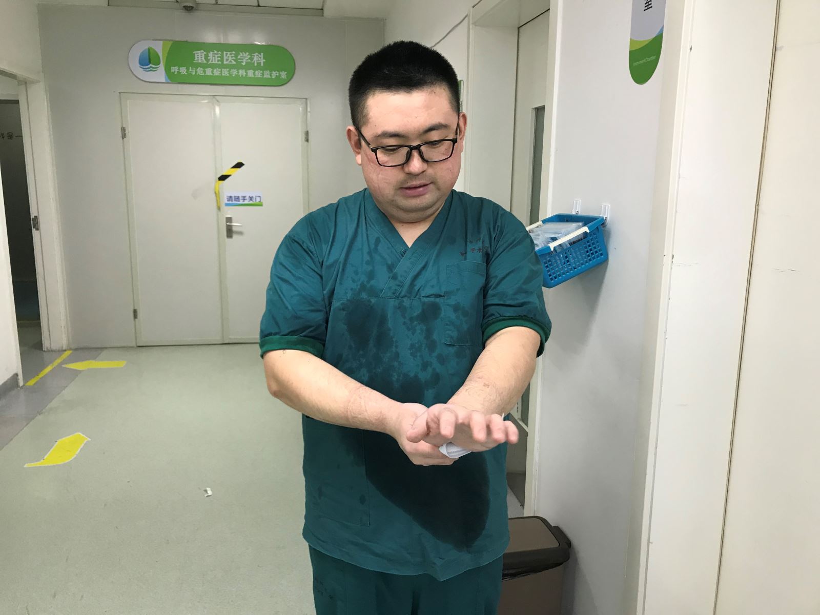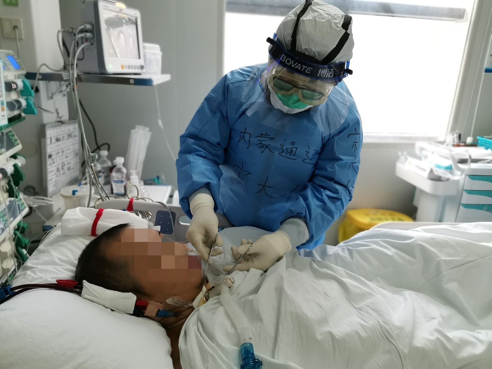 刚到武汉时,看到武汉人民的热情,看到悲凉的武汉城市夜景,他心里特别难受。21日是宋大伟上班的第一天,他被分配到ICU重症监护室工作,当他看到一个个危重症患者,插着满身的管路,同时使用着三、四台抢救治疗仪器设备,他强忍住眼泪。当地病房的李老师告诉他,1床、6床、11床、12床都是同行医务人员时,他停住脚步,注视着,心里有说不出来的滋味,眼泪再也控制不住流了下来。都说男儿有泪不轻弹,当时的场景对宋大伟触动特别大,他对队友说:“武汉人民太需要我们了,咱们还是来晚了,我们要赶紧投入救治工作中,让患者早日康复治愈。”