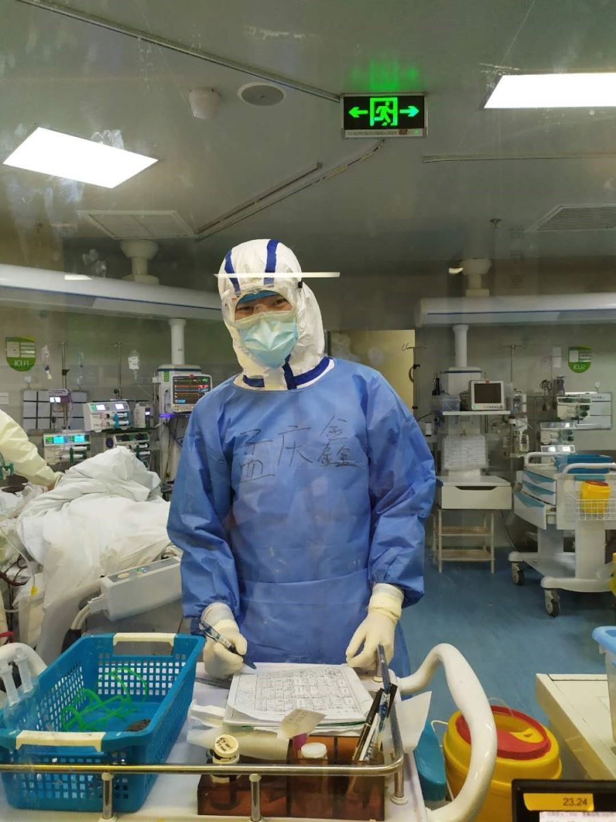 武汉肺科医院是武汉市第一批接受新冠病毒的定点医院,这次我院医疗队部分人员被分派到了重症监护室,我在其中。我们进入病房前要穿三层防护服,全副武装的防护服就如同密不透风的墙,带上口罩和护目镜后,我的呼吸和行动也变得十分吃力。这里的患者多数是危重症患者,因为病毒的侵害,很多患者处于半清醒或昏迷状态,在ICU病房里,接受呼吸机、ECMO(人工肺)、CRRT(连续肾脏代替疗法)等一系列治疗,每一个患者身上都插满了管子。为了让患者肺部均匀,将肺部的痰清理出来,我们要帮助患者做俯卧位通气,这里的患者没有家属的陪同,护理上的一切操作都是需要我们来完成,挪动一次患者并不是容易的事,通常需要3~4位护士协同完成。每一次操作我们都极其小心,因为患者身上带着各种管路,稍有不慎就会脱落,对于患者来说是致命的。