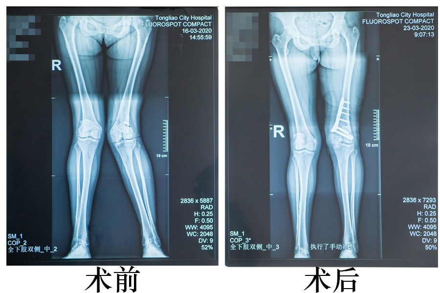 据兰荫梧主任及杨松涛医生介绍,截骨矫形就是通过改善膝关节的负重力线,使髋、膝、踝关节的中心连线近于1条直线,也就是恢复正常的下肢机械轴线,以达到矫正畸形、确保膝关节力学稳定和解除疼痛的目的。此类股骨截骨矫正手术属于四级手术,是技术难度最高级别的手术,在我市较为少见。