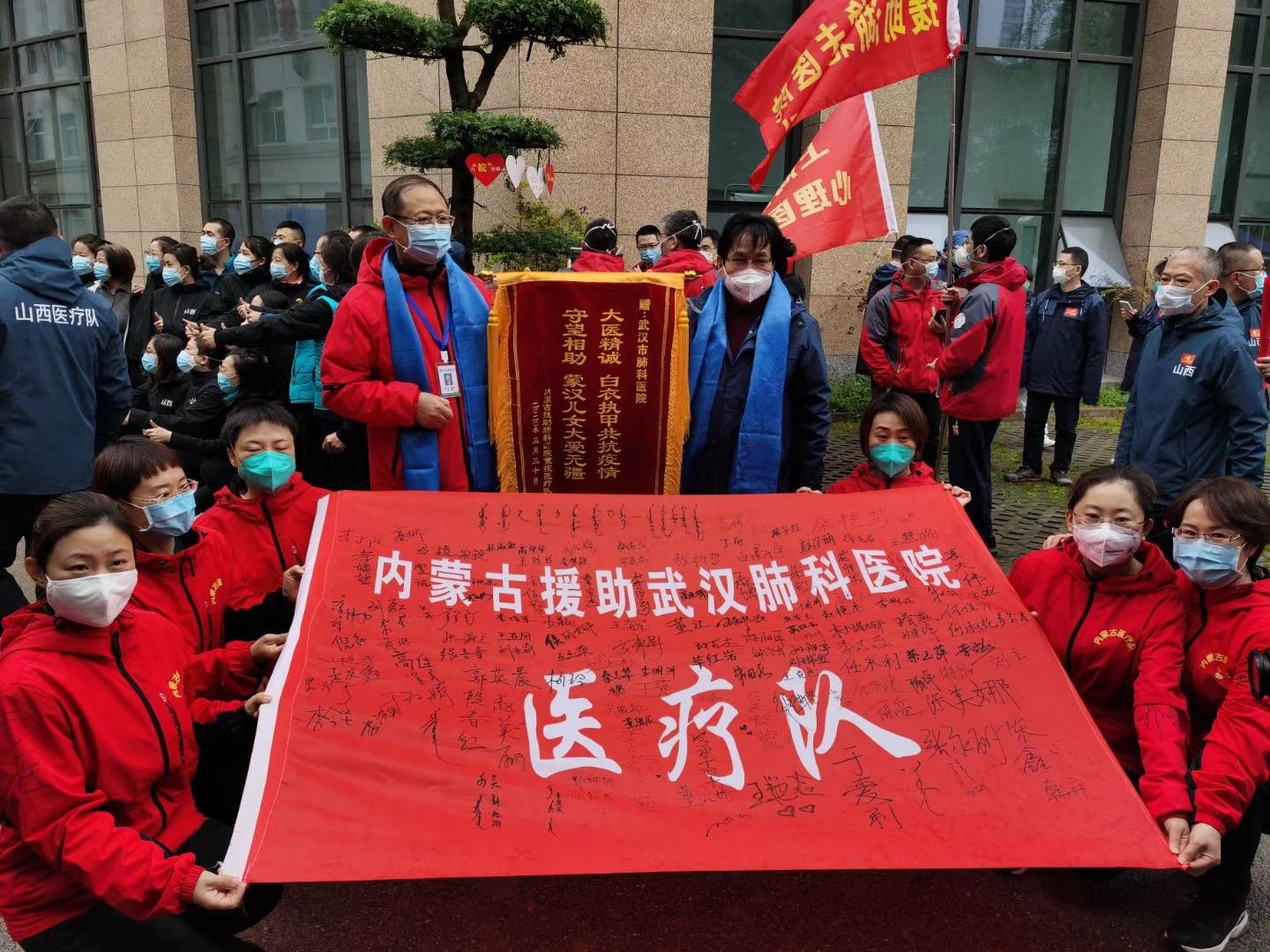 出发来武汉的时候我没有哭,因为我知道我会回来。41天的援鄂任务结束,送别时刻我们都哭了,因为知道此生再无此情此景的相聚。武汉市肺科医院的胡明主任哽咽说:好多人都还不认识,就是这些不熟悉的面孔在一起经历过生死。我们要回家了,把内蒙人最美好的祝福留给武汉,留给英雄的城市,英雄的人民!