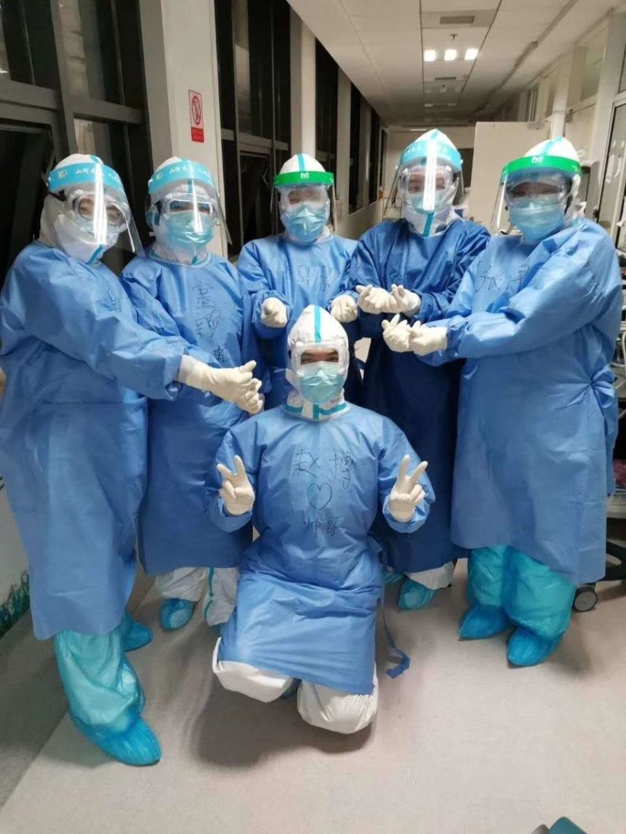 2020年2月18日驰援武汉,第二天进入武汉肺科医院,进行岗前培训后,立即进入十三楼重症医学科工作,10张床始终处于满床状态,全部是气管插管,有创呼吸机辅助通气的患者,周身插满各种管路,可谓是前线中的火线。为了减少人机对抗和氧耗,医生基本都给予患者镇痛镇静及肌松药物治疗。在这里我们没有和患者交流、互动的可能,只有尽己所能为病人做好每一项操作和处置。通过这次疫情我看到了武汉市肺科医院医务工作者的坚韧不拔,舍小家、顾大家的高尚情操,看到了中国共产党领导下的全国人民众志成城、抗击疫情的信心和决心。我只是尽了一名医务工作者应尽的责任和义务,感谢党中央对我们广大医务工作者的关怀和鼓励,感谢后方家人们的大力支持,感谢武汉人民的信任和热情好客,今日洒泪别战友,期盼再聚话友情。再见英雄的城市,再见英雄的人们。