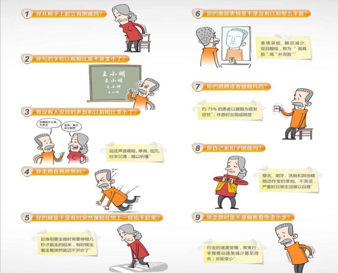 如何早发现?帕金森早期表现九问,如果你有3个以上答案“是”,那么你就需要帕金森专科医师的帮助了。