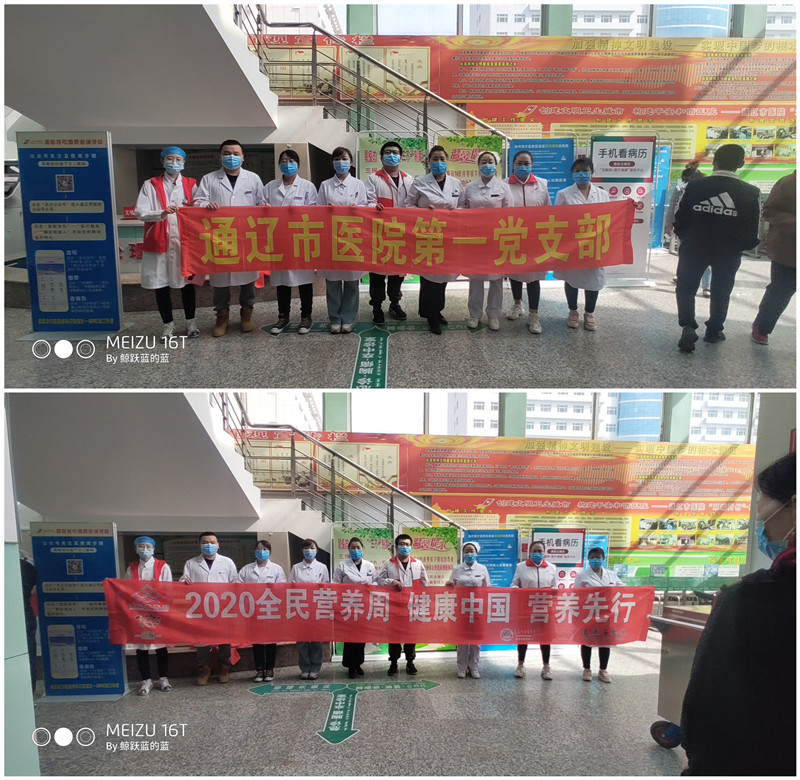 为贯彻落实《“健康中国2030”规划纲要》和《国民营养计划(2017-2030)》以及《内蒙古卫生健康委关于开展2020年全民营养周暨“5.20”中国学生营养日主题宣传活动的通知》的文件精神,宣传营养健康理念,提高全民营养科学素质,推动营养事业蓬勃发展,通辽市医院第一党支部携手营养科开展主题党日活动,以2020年全民营养周宣传口号为“健康中国、营养先行”“合理膳食、全民营养新时代”,传播主题为“合理膳食、免疫基石”,倡导“兴新食尚推行分餐预防疾病减少浪费”全民分餐制。活动主要内容为:开展以“合理膳食免疫基石”为核心的宣传教育,普及合理膳食对于增强免疫的基石作用和相关知识技能,倡导“三减”(减油、减盐、减糖)、分餐制和使用公勺公筷等饮食风尚,摒弃滥食野生动物陋习,提高公众对食物营养、平衡膳食和健康饮食基本原则的认识。希望通过全民营养周的营养教育与实践指导,引导全社会的重视营养、重视健康,早日进入全民营养、践行健康生活方式,推进合理膳食行动,全民健康的时代。
