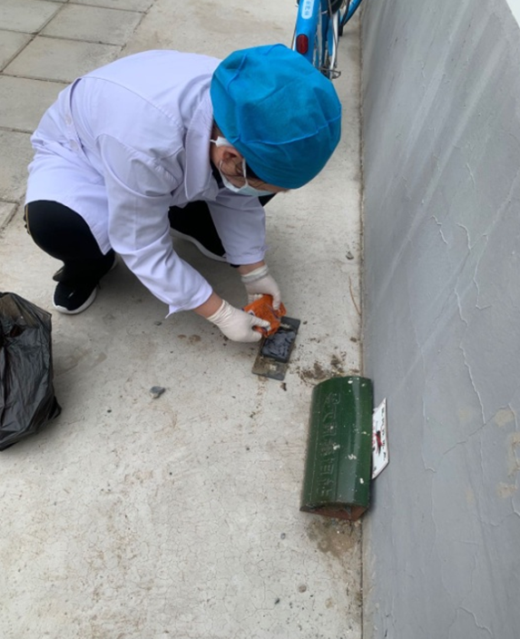 5月18日,我院预防保健科工作人员对东、西、北三个院区进行了集中灭鼠工作,在各个毒饵站投放鼠药并添加毒饵站标识,并对三个院区进行了集中灭蟑螂工作,在病房各个角落涂抹杀蟑胶饵。次日,我院鼠疫疫情防控工作督导检查组对东、西、北三个院区的灭鼠设施使用情况及鼠疫疫情防控相关制度知晓情况进行检查督导。检查中,各院区毒饵站标识清晰,鼠药投放规范;食堂食品储物间、库房都按相关要求设置挡鼠板、粘鼠板;抽查各科室医务人员对鼠疫疫情“五早一就”制度、发热病人排查制度、鼠疫首诊医生负责制度等鼠疫疫情防控相关制度知晓情况掌握程度较好。