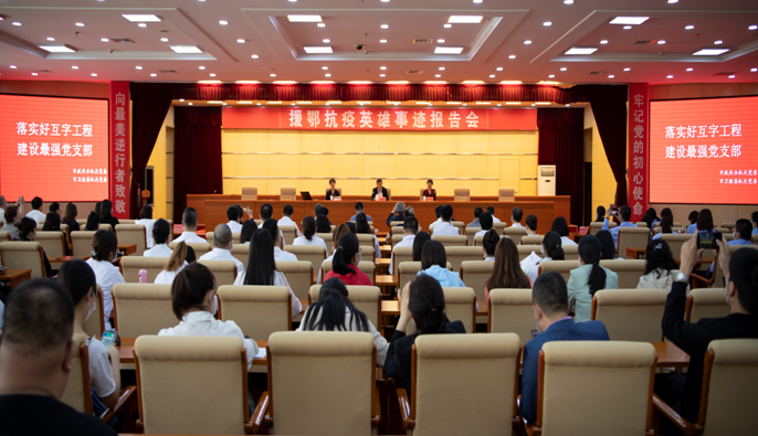 为大力宣传抗疫英雄的先进事迹,传承弘扬英雄们的勇敢无畏的精神,以实实在在的工作业绩,落实好通辽市委市政府的重大决策部署,落实好市直党工委党建“互字工程”,争做合格党员,建设最强党支部,6月3日下午,通辽市政府办公室机关党委与市卫健委系统党委联合组织召开了“援鄂抗疫英雄事迹报告会”。至此邀请了我院援鄂医疗队临时党支部书记、神经内一科护士长何淑花,ICU病房副主任医师、援鄂医疗队队长徐光启作英雄事迹报告。通辽市政府副秘书长董景秀出席并主持报告会,我院党委委员、副院长张双青出席。来自市政府办公室机关党委、市卫健委机关党委的党员干部共计200余人参加了此次报告会。