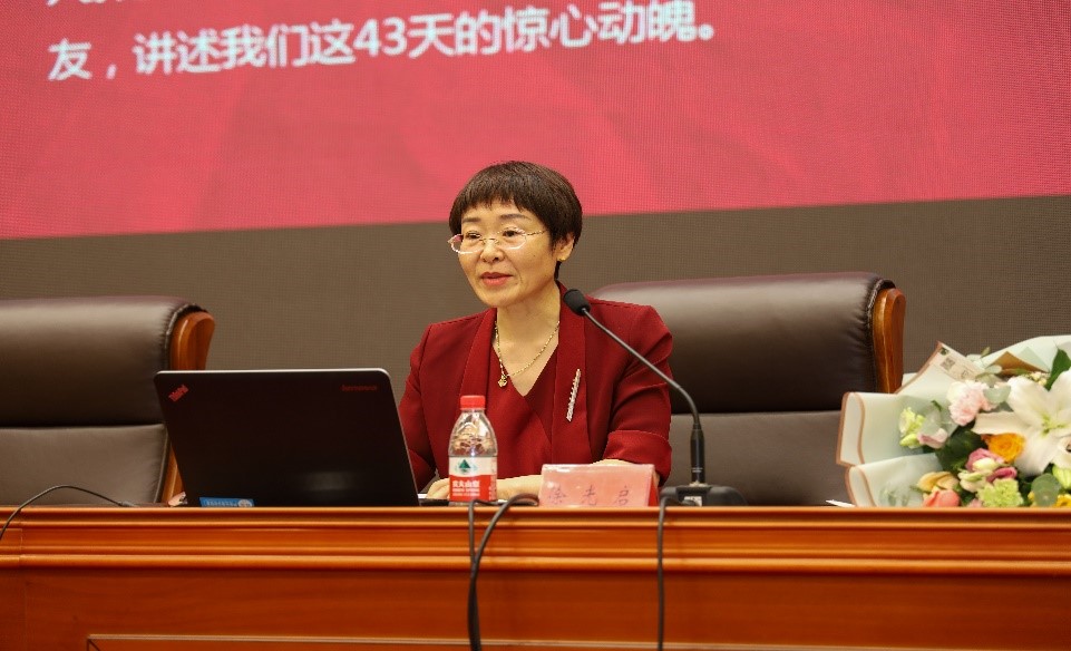 通辽市市委常委秘书长王琼、在家班子成员以及党办机关党委所属党支部的全体党员干部出席了此次报告会,我院党委书记雷彤率队,带领我院两位援鄂医疗队员代表,援鄂医疗队临时党支部书记、原神经内一科护士长何淑花,援鄂医疗队队长、重症医学科副主任医师徐光启参加此次报告会。报告会由通辽市委副秘书长、办公室主任钟卫华主持。