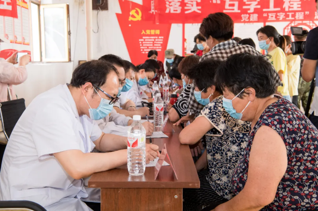 为进一步贯彻落实上级关于“百日攻坚”专项行动、建设“最强党支部”工作部署和“互字工程”工作安排,6月13日,在我院党建“互字工程”活动领导小组的统一部署下,与市卫健委和地方病防治站党支部联合组织了本次义诊活动。由院党委办公室联合各党支部组成了一支阵容强大、实力强劲的专家骨干队伍,共计二十余名优秀党员及志愿者参加。大家深入到库伦旗毛敦艾里嘎查,开展党建“互字工程”及“迎接七一,服务群众”主题党日活动。