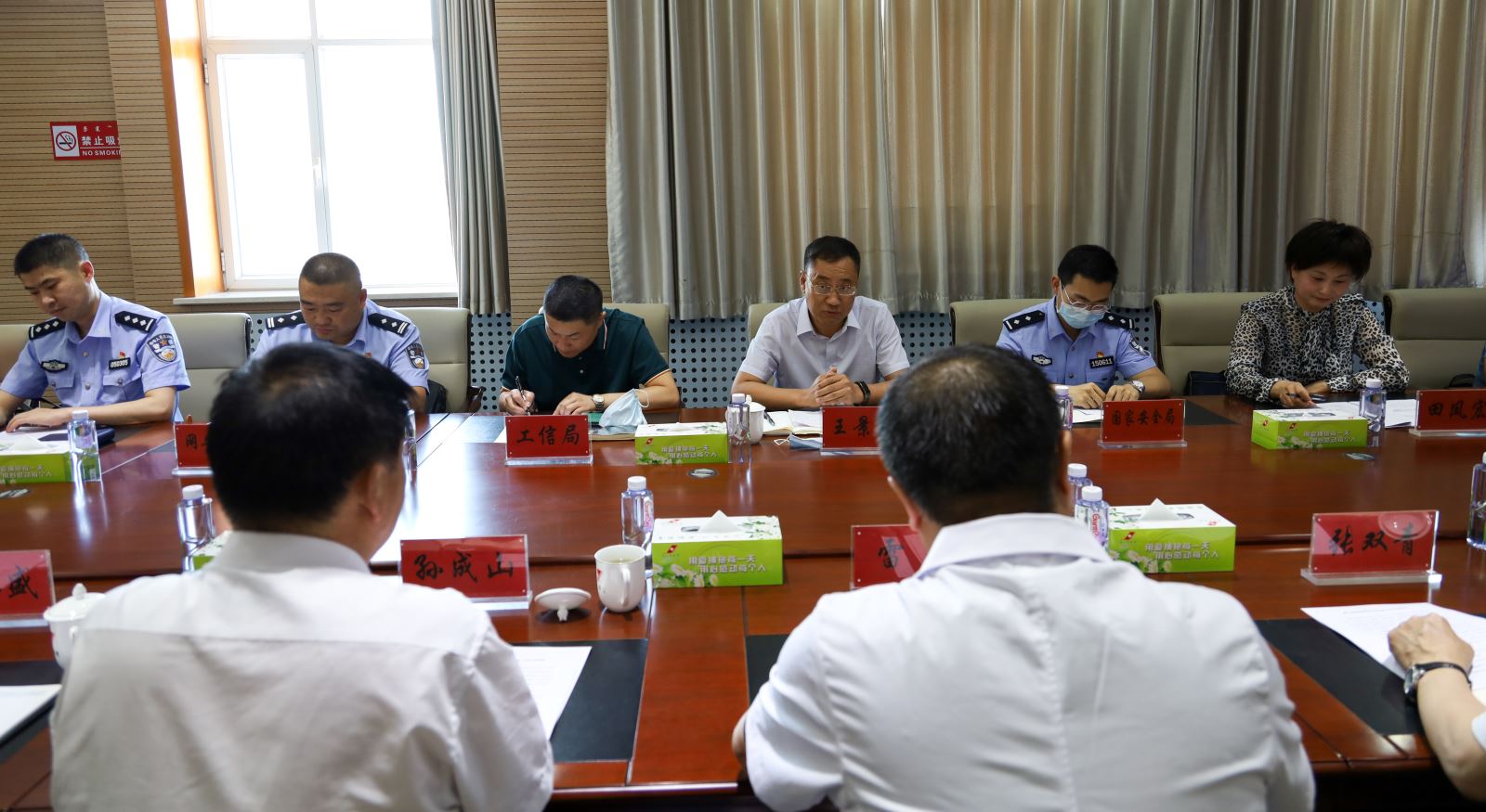 此次检查由座谈汇报、查阅制度及软件等多种形式组成。座谈会在我院全科医师培训楼八楼会议室召开,由市委网信办网络安全和信息化科负责人、市网络舆情监测预警服务中心主任田凤宏主持,市委网信办副主任王景林首先发表讲话,传达了市委网信办对网络安全工作的新要求新期望。随后检查组听取了我院副院长对医院网络安全工作的汇报,了解医院网络安全工作的具体情况并对汇报材料中的相关信息与我院党委书记雷彤、计算机网络信息中心主任王永盛进行了热烈充分的探讨。座谈会后检查小组前往我院计算机网络信息中心查阅了网络安全工作有关规章制度和相关材料,实地检查了网络设施设备、机房安全及运维管理等具体情况,并作出了实时反馈。