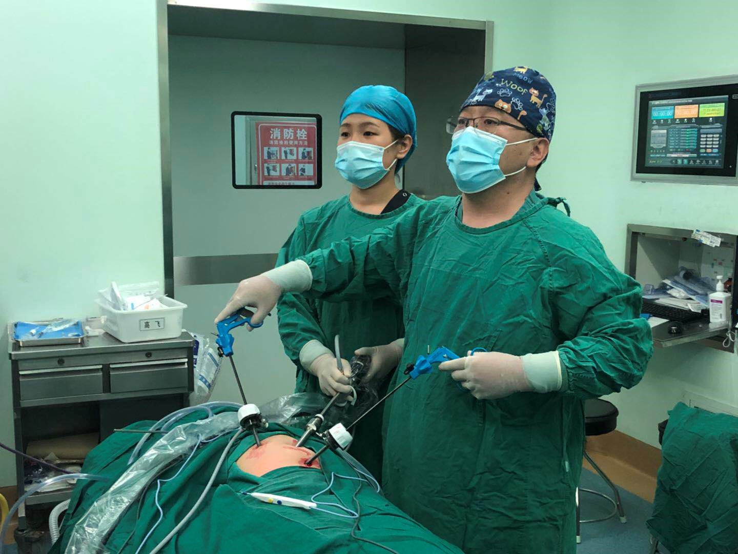 2.精索鞘膜积液手术,患儿男性,2岁零11个月。主因“发现左侧腹股沟区可复性肿物2年”入院。经查体:站立位,左侧腹股沟区隆起,两侧阴囊不对称,左侧阴囊肿大,内可触及约2.0*2.0cm大小肿物,边界清,无压痛,休息及平卧位可还纳入腹腔,阴囊透光试验阳性,右侧阴囊及睾丸正常。彩超提示:左侧精索鞘膜积液。入院后完善相关检查及化验,患儿诊断为“左侧精索鞘膜积液”,无手术禁忌,小儿外科团队对患儿行腹腔镜下左侧鞘状突高位结扎术。患儿在术后6小时进食、下床活动,已顺利出院。
