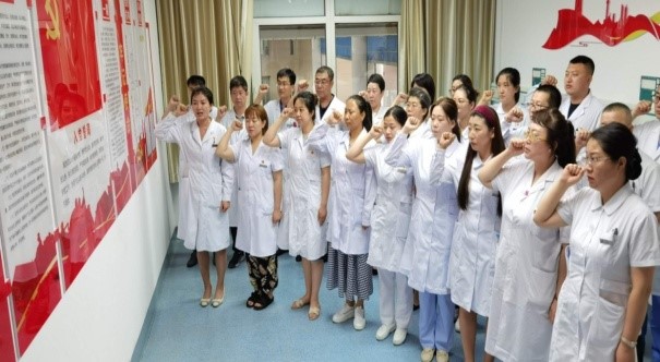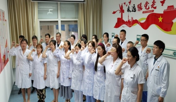 99年前的七月,各地共产主义小组的代表13人汇集在上海法租界望志路106号,代表全国53名党员举行中国共产党第一次全国代表大会。由于受到法租界巡捕的干扰,会议的最后一天改在浙江嘉兴南湖的一艘游船上举行。党的第一次全国代表大会正式宣告了中国共产党的诞生,从此,在中国出现了一个完全崭新的、以马克思列宁主义为行动指南的无产阶级政党。从此,中国共产党人抛头颅洒热血、前仆后继,走出白色恐怖、走出雪山草地、走出战火硝烟,缔造了崭新的中华人民共和国,半个世纪以来,中国共产党带领中国人民实现了从站起来到富起来强起来的伟大跨越。我们深深为自己能成为一名中国共产党党员而自豪!在7月1日党的生日之际,我们第十党支部全体党员举行了重温入党誓词活动,支部27名党员、2名预备党员、4名入党积极分子、2名入党申请人参加了活动。支部书记吕凤同志带领大家,面对鲜红的党旗,庄严地举起右手:"我志愿加入中国共产党,拥护党的纲领,遵守党的章程,履行党员义务,执行党的决定,严守党的纪律,保守党的秘密,对党忠诚,积极工作,为共产主义奋斗终身,随时准备为党和人民牺牲一切,永不叛党。" 铿锵有力的誓言给每个人的内心都带来强烈的震撼,激动的心情久久不能平复。我们深深认识到,每一位共产党员都应该永远铭记这份誓词,不忘入党初心,时刻警醒自己的言行,在日常生活工作中,充分发挥党员先锋模范作用,做一名“知党恩、听党话、跟党走”的合格党员。