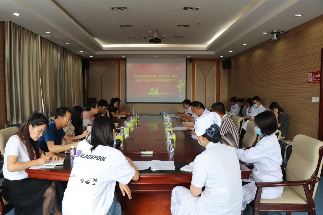 为贯彻执行《通辽市卫健委关于在市直卫生健康系统开展党建“互字工程”活动的通知》(通卫健党字〔2020〕11号)《通辽市卫健委关于印发市直卫生健康系统建设“最强党支部”工作方案的通知》(通卫健党字〔2020〕10号文件精神,7月2日下午,在行政楼八楼会议室,市直机关党建“互字工程”巡回第三指导组一行7人莅临我院进行指导。院党委书记雷彤主持会议;参加会议的还有我院党委副书记、我院各党支部书记及委员等。