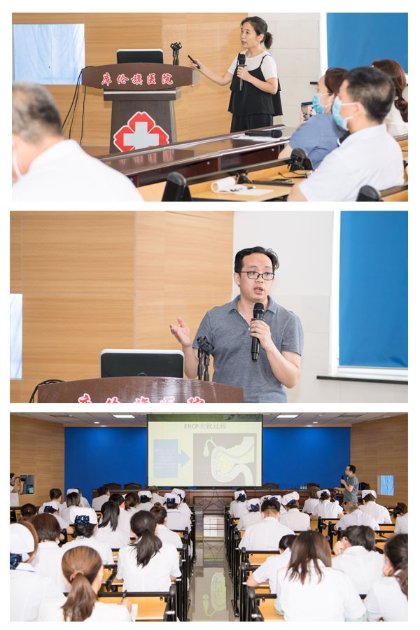 与此同时,在库伦旗医院的大会议室内我院消化内镜中心医生白乌日娜、李海鹏分别以《超声内镜(微探头)大作用》和《我的ERCP经历及体会》为题进行了精彩的专题讲座,并结合临床工作实际,极具专业性和前瞻性,引起了当地近120名参会医务人员的共鸣,讲座现场气氛热烈,学术氛围浓郁。