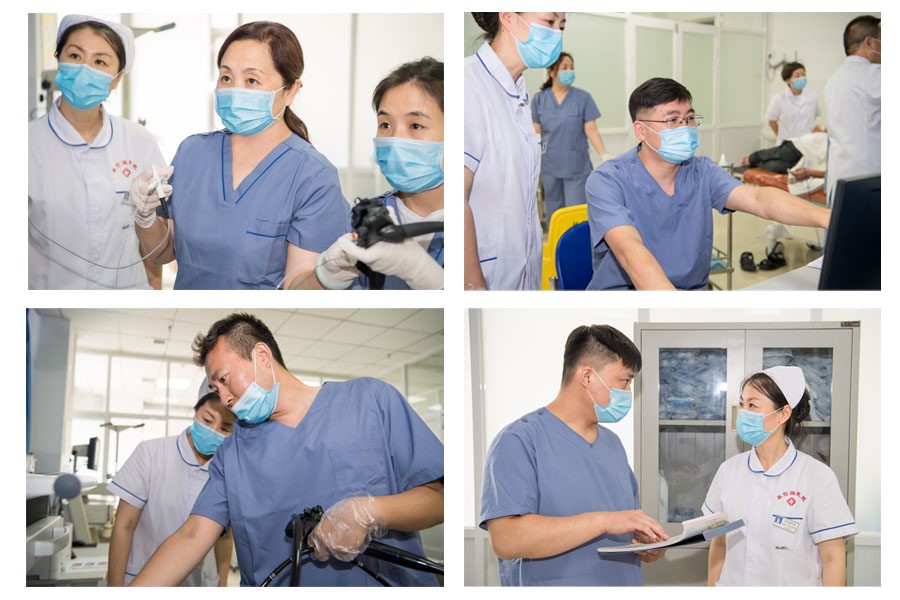 库伦旗医院消化内镜检查室内,我院专家为预约患者开展胃镜检查、肠镜检查等诊疗工作,并对库伦旗医院消化内镜科医生进行手把手教学的同时,我院消化内镜张哲华护士长带领护理团队在院感、设备维护及故障处理和网络管理等医疗安全方面与其交流与传授。马宏珍主任强调:“内镜护士是内镜医生的另一双眼和另一双手。希望通过此次活动,库伦旗医院能够重视内镜护士的培养,共同发展、共同进步,在医疗安全方面保驾护航。”
