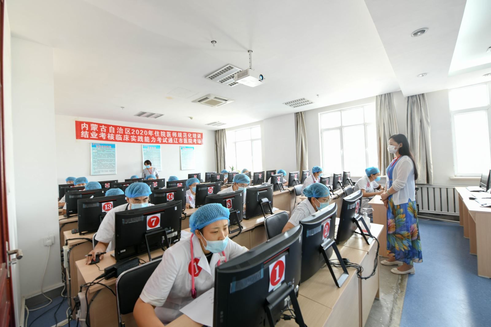 为积极贯彻《内蒙古自治区卫生健康委员会办公室关于开展2020年住院医师规范化培训结业临床实践能力考试的通知》(内卫办科教发〔2020〕93号)文件精神,8月8日~12日,我院举行了2020年住院医师规范化培训结业考试临床实践能力考试工作,涉及内科、泌尿外科、麻醉科、骨科、全科、儿科、妇科、放射科、精神科等专业的36名考生参加了此次结业考试,圆满完成了考核任务。