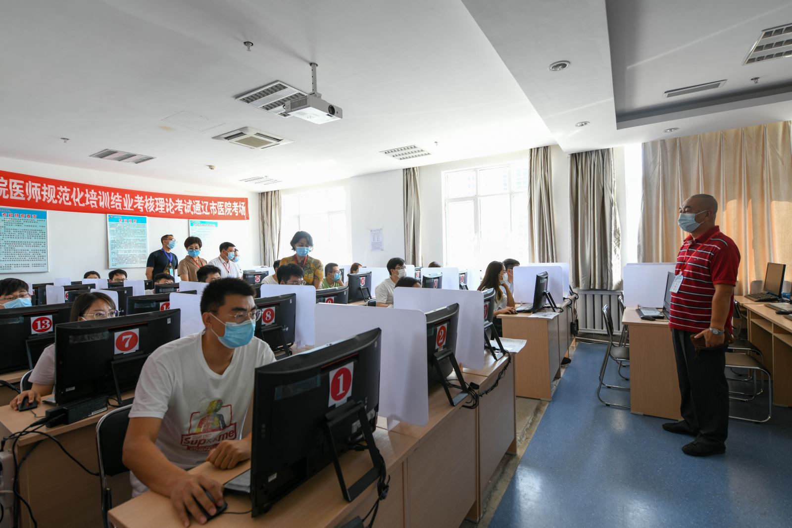 本次理论考试采取人机对话的形式,由国家卫健委统一命题,是我院首次承担的国家住培结业考核理论考试。我院领导高度重视,成立了结业理论考试领导小组,全面负责考试基地建设和考试实施工作,副院长担任首席考官,分管副院长杜艳秋任基地总考官,对考试实施的全过程进行现场指导监督。