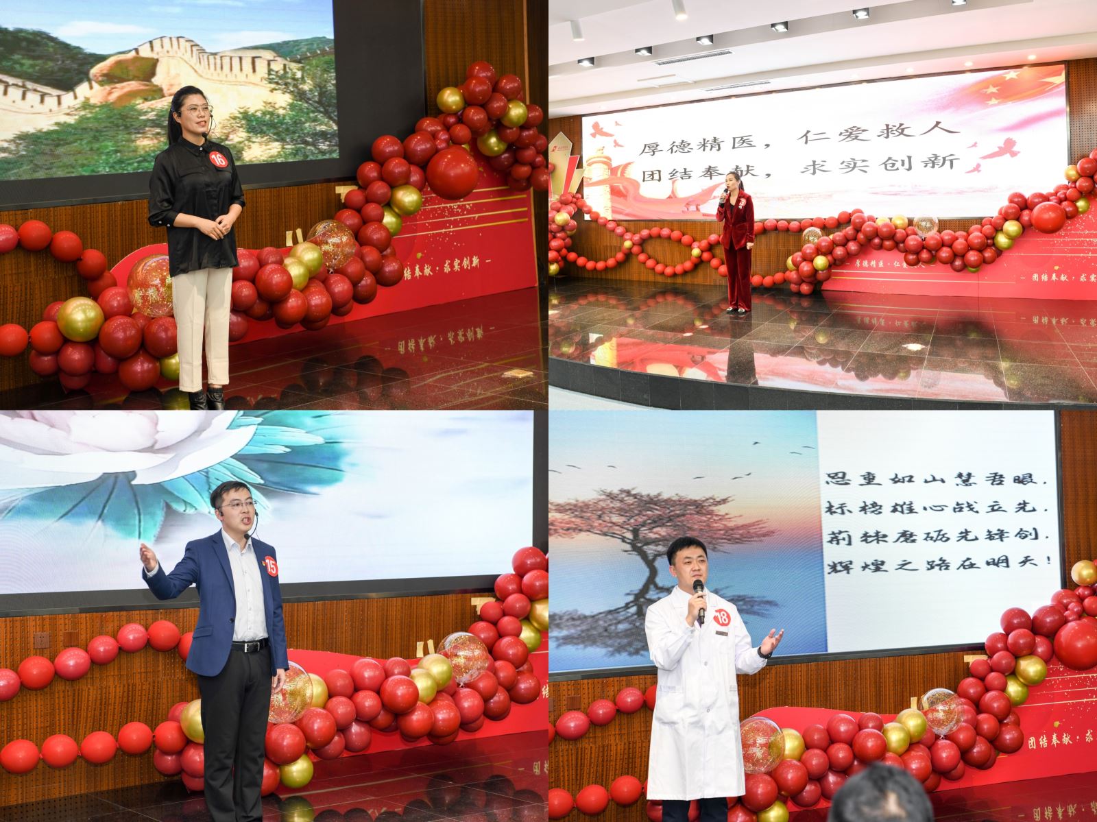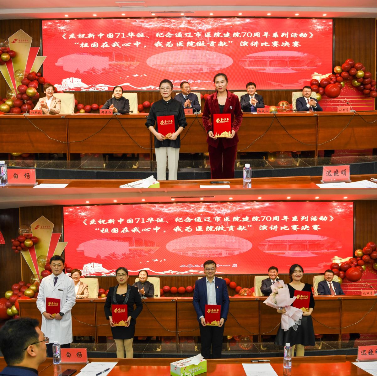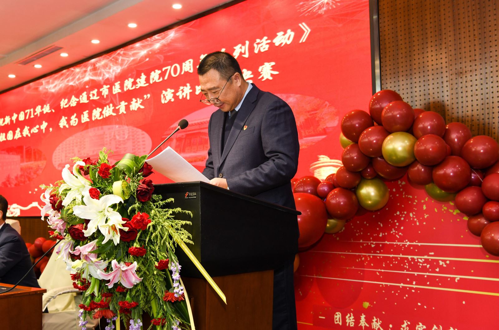 听完青年同志们的演讲,党委书记雷彤深有感触,为比赛作了慷慨激昂的总结发言。雷书记向所有参赛选手表示祝贺,向活动的组织及参与者表示感谢。随后,他结合自身经历回忆了工作中亲身参与的重大事件、难忘的经历,回顾了医院在基建、设备、技术、学科建设、科研、教学等方面的巨变历程。雷书记强调,通辽市医院已经走过了70年的风雨历程,在一代代市医院人的砥砺奋进中,建设成为如今繁荣发展的美好局面,站在新的历史起点上,全体职工要高举习近平新时代中国特色社会主义思想的伟大旗帜,深入贯彻党的十九大五中全会精神,按照国家十四五规划以及二〇三五年远景目标的蓝图,坚定理想信念,全力打造人民满意的现代医院,以永恒的追求和不懈的努力,谱写通辽市医院更加绚丽、华美的乐章!“祖国在我心中,我为医院做贡献”主题演讲比赛决赛及系列院庆活动在一片团结和奋进的氛围中圆满落幕。