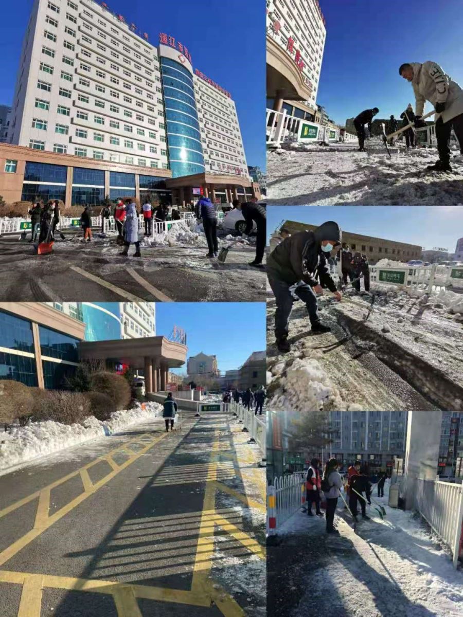 此时的通辽市医院显得和谐温暖,流动着欢乐的气氛,虽然天气寒冷,但他们个个干劲十足,志愿者忙碌的身影在寒冷的冬天构成了一道亮丽的风景线。本预定于十二点清扫结束,但由于东侧三包责任区积雪较厚,清理比较困难,此时精疲力尽的同志们,咬牙坚持继续战斗。经过三个半小时的奋战,医院的道路及院外责任区已被清扫干净,道路畅通无阻,确保患者及其职工出行安全。