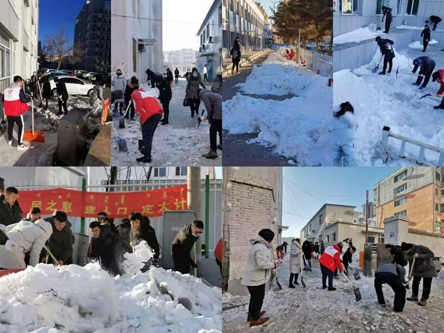 因四十年来罕见的大雪,院内交通严重受阻,近期院里虽使用铲车、翻斗车进行除雪外运,但仍有部分铲车不能到达的死角无法彻底清除,需要人工进行清理。2020年11月27日院团委发动全院职工组织志愿者开展“大雪无情人有情,我为医院做贡献”活动,此项活动发出仅仅几个小时的时间里就有百余人志愿者报名参加,大家舍弃自己放假休息的时间,报名科室20余个,院领导、科主任、护士长也积极参与其中,体现了模范带头作用。