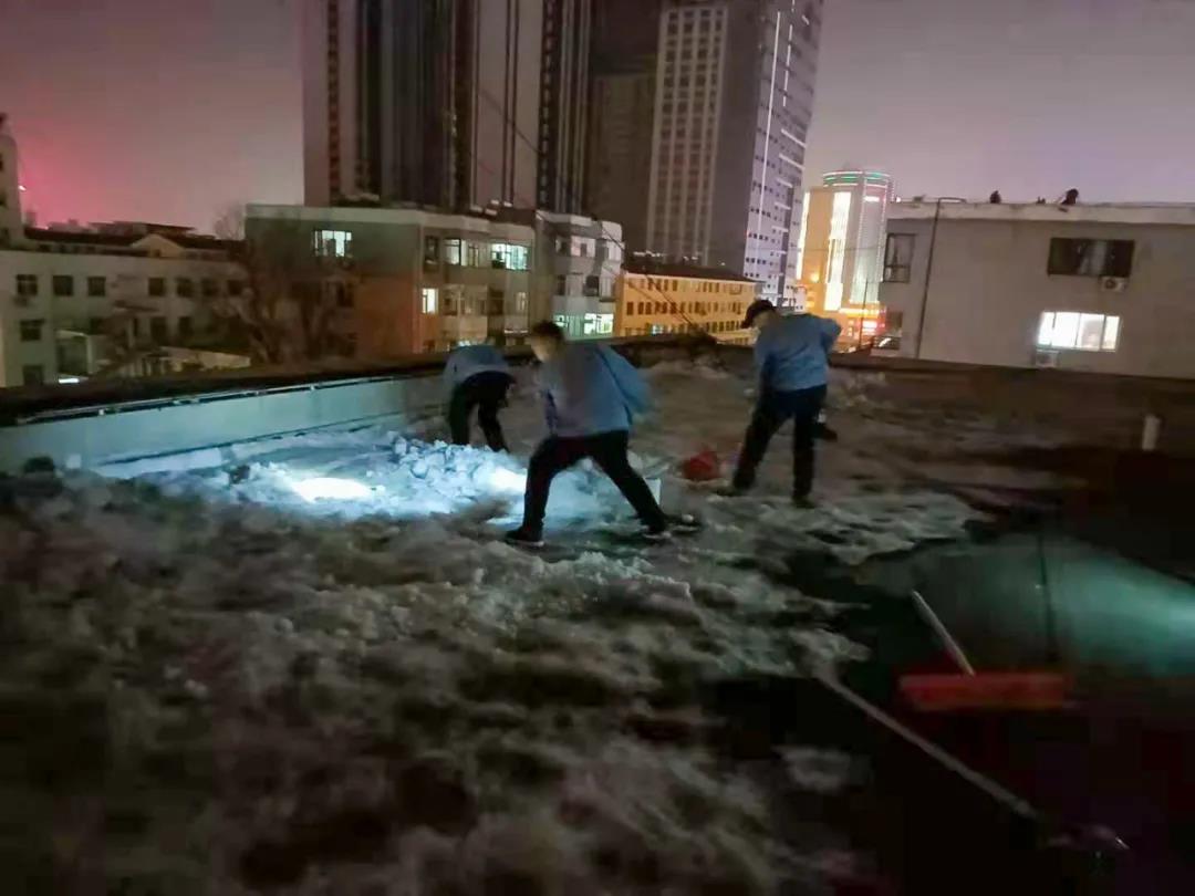 大年三十对于后勤保障人员来说同样难以忘怀。除夕晚上,总务科接到了东院区住院部二号楼楼顶漏水的报修电话,水暖班、电工班立即着手组织抢修,四位值班人员带着工具登上楼顶,在漆黑的夜晚凭借着手电的微光铲除积雪、维修管道……新春除夕夜气温虽然寒冷,但是这四位值班人员热火朝天的抢修画面却为医院带来一阵暖意。