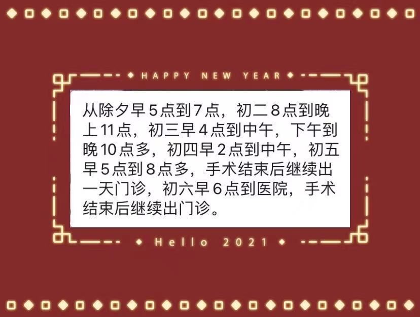 全世界的人,下起平民百姓,上到领袖“大臣”,哪个不是你手下的新人?“一刀剖开生死门、双手捧出幸福光”,作为百姓谁都不会喜欢医院,但也是谁都离不开医院。已年过5旬的产科主任黄立强,春节7天一人就主刀15台分娩手术,从除夕到初六,产房外万家灯火齐欢,产房内一盏灯点亮新生。无需多言,一组简短的行程单便可以汇聚出产科一方医护的默默值守。