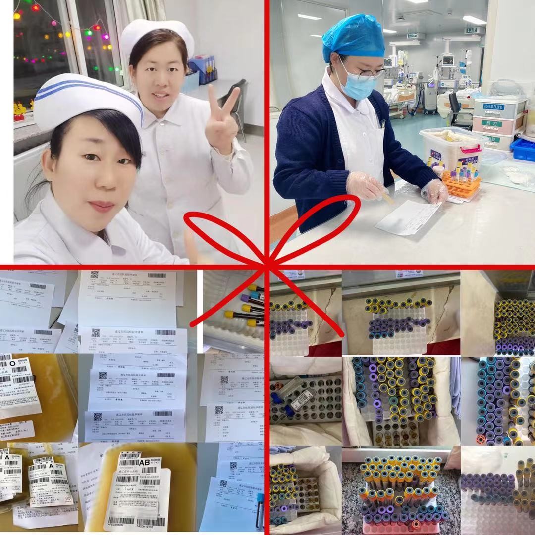 服务部,春节期间累计收取化验2716管。238管尿常规化验,培养20盒、备血48管、合血48管、取血32次、急手术患者核酸送检6次、取药36次、收取急化验218次、核酸送检36次,取送化验98管、取药8次、为患者缴费6次,门诊陪检23次。数据是冰冷的,汗水却见初心,正如这枚同心结。