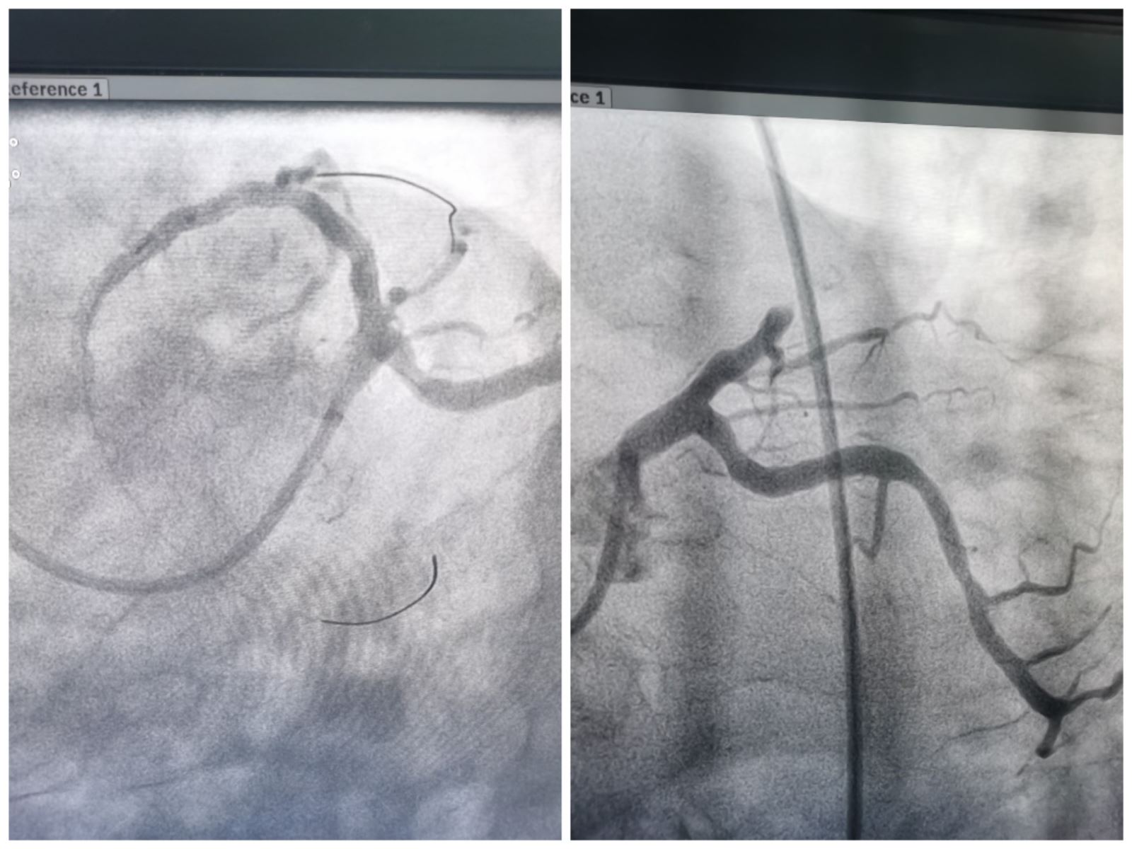 男性患者,58岁,既往有高血压、糖尿病、长期吸烟史,因患者突发胸痛6小时,并出现头晕、左下肢无力等症状,至我院胸痛中心就诊。经相关检查,心电图提示:广泛前壁心肌梗死,诊断考虑该患者为急性广泛前壁心梗,评估后,面积较大。因患者有头晕、肢体无力的症状,行头颅CT提示:右侧脑室旁缺血灶,考虑新发病变可能性大。